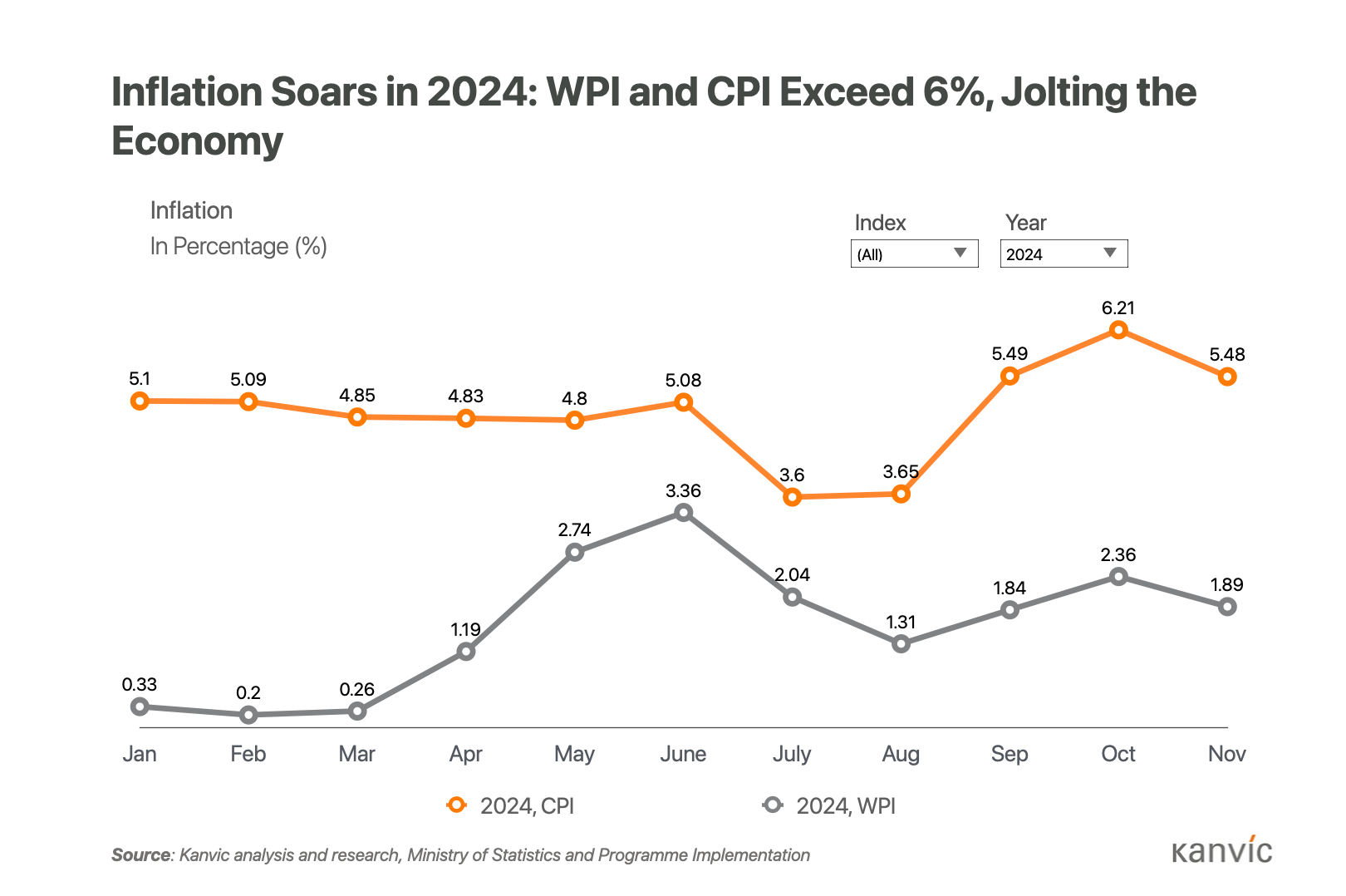 India’s CPI inflation eased to 5.48% in November 2024, down from 6.21% in October, falling within the RBI’s target range of 2-6%. The IIP growth improved to 3.5% in October, up from 3.1% in September, signaling industrial recovery.
